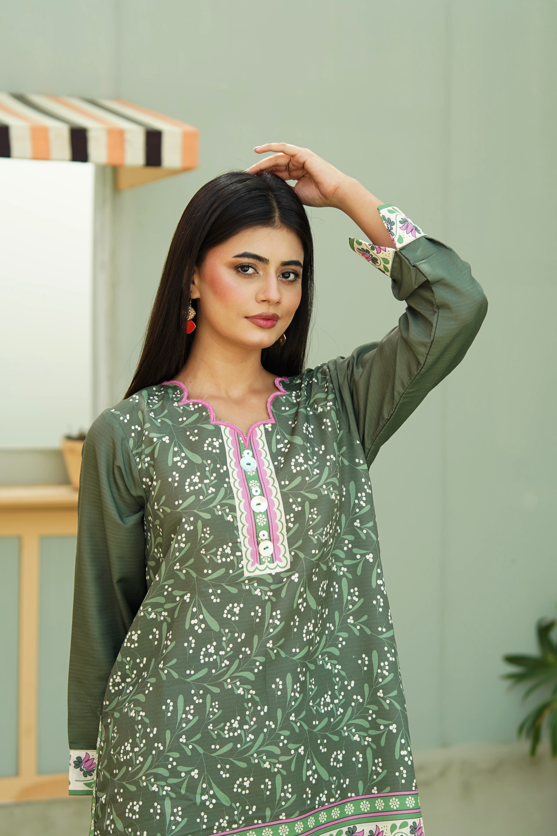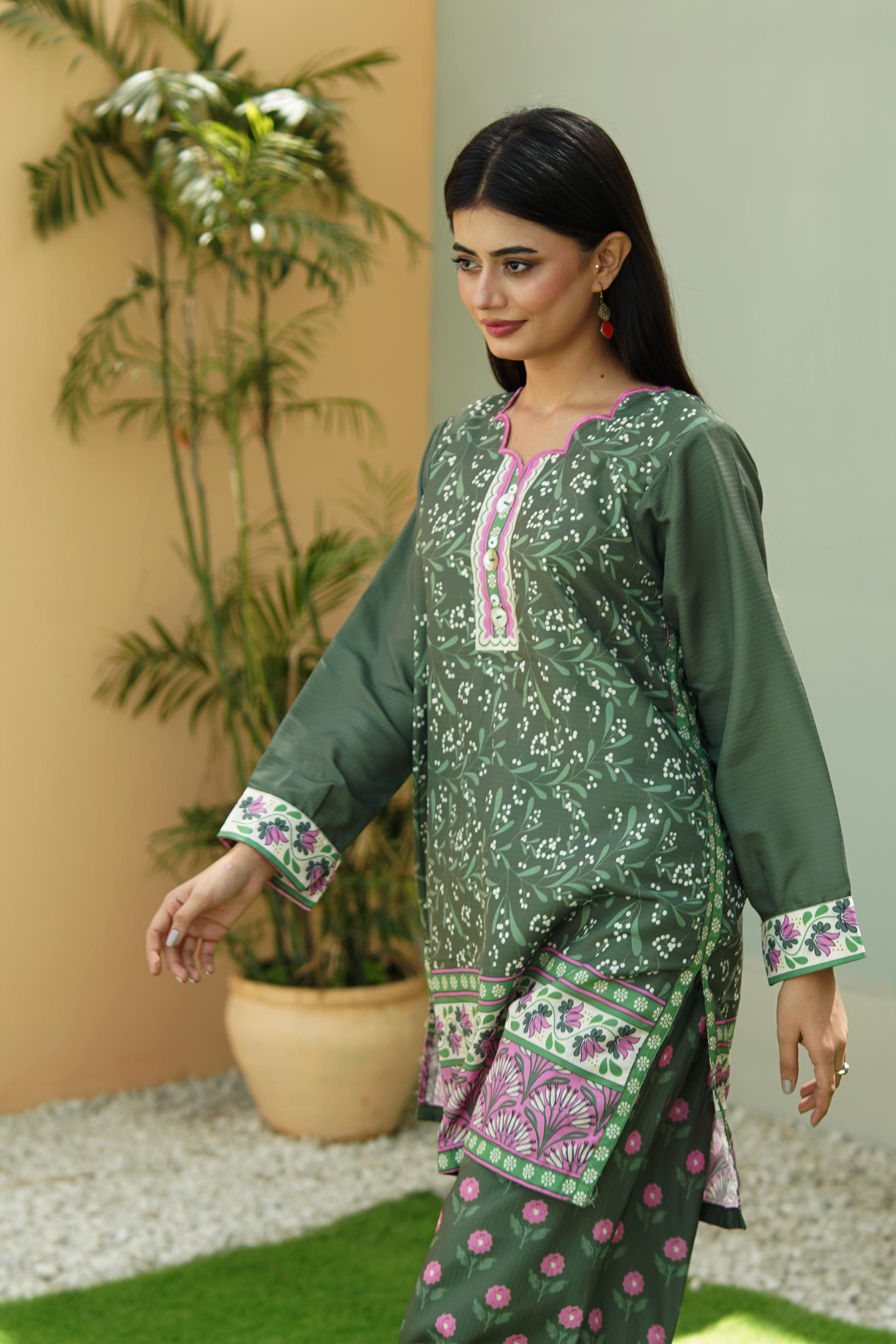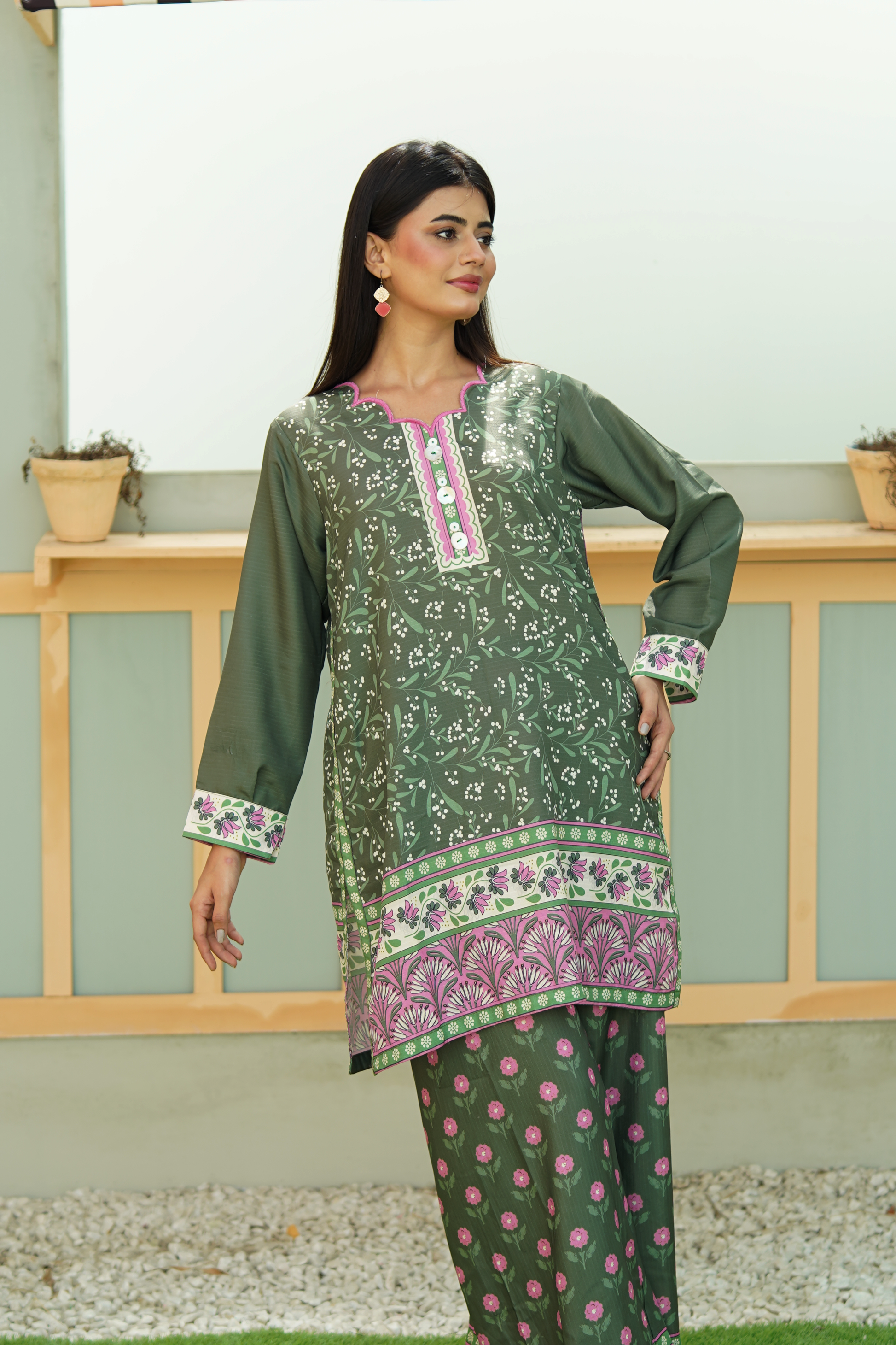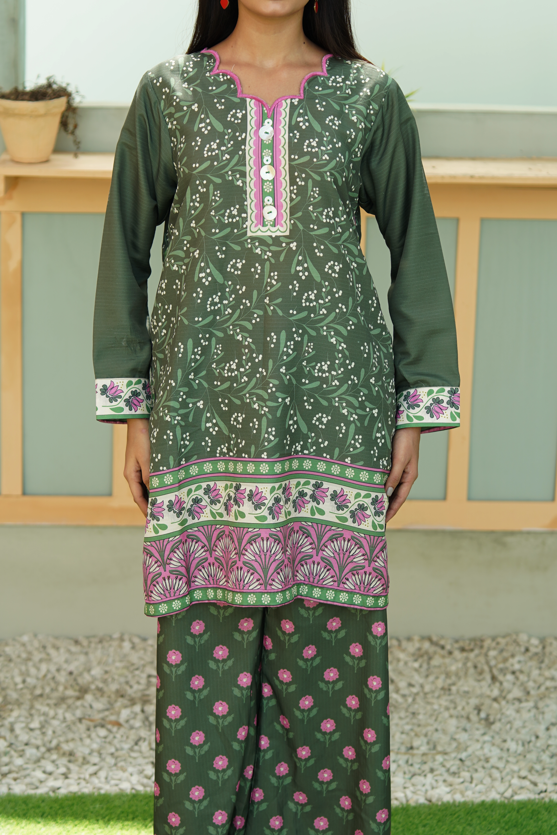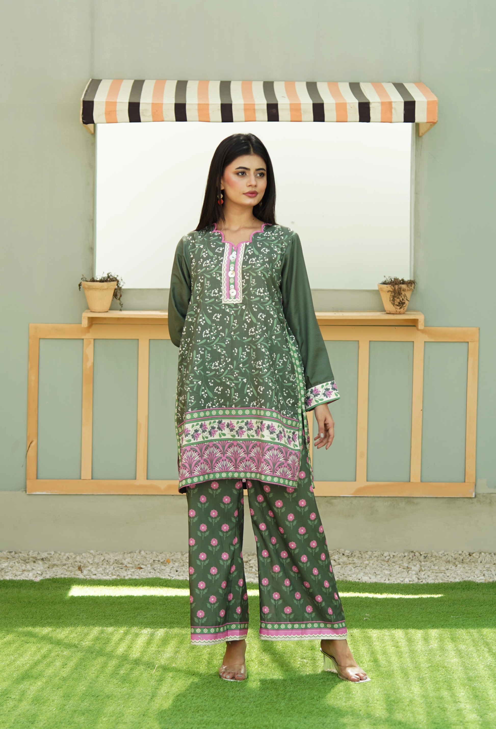 Add effortless charm to your wardrobe with this printed co-ord set crafted from soft Linéa Cambric. Featuring a floral + geometric pattern, the set pairs a shirt with matching culottes. Perfect for casual outings, brunches, or everyday wear.
