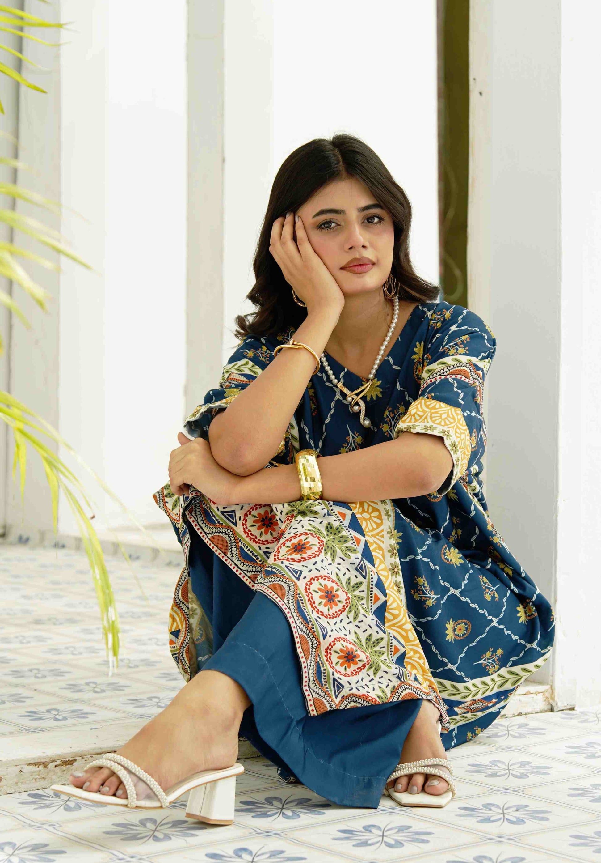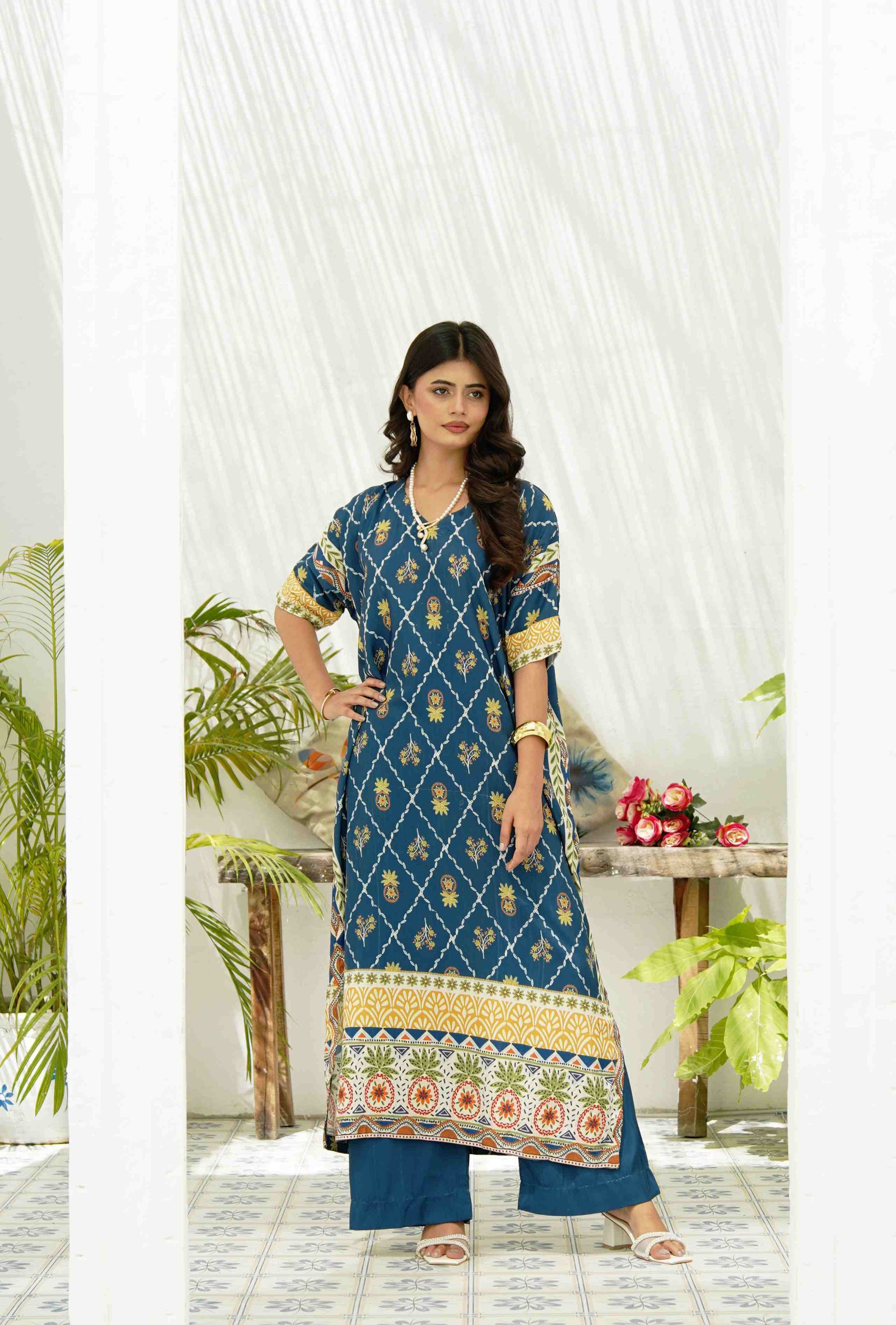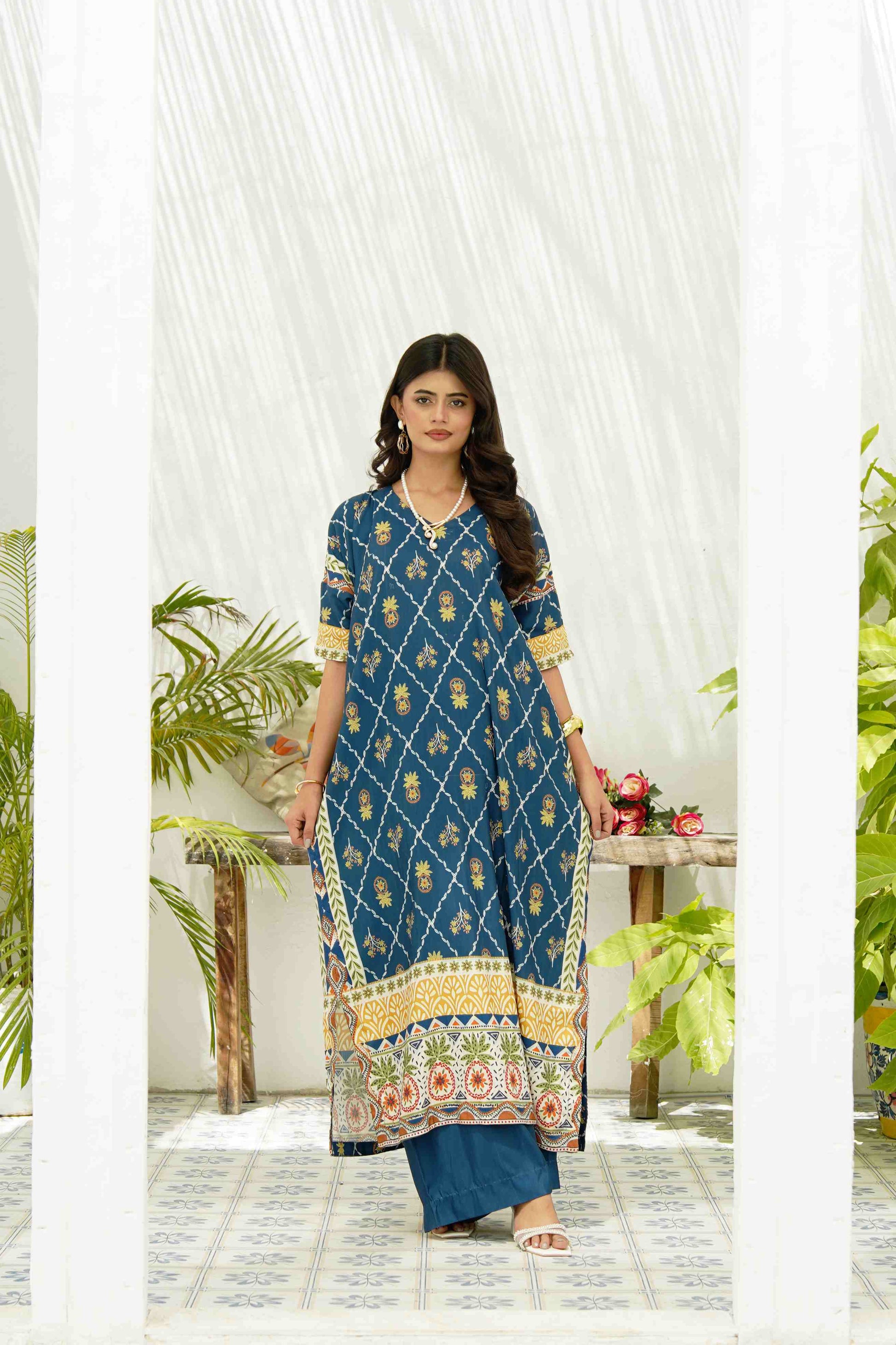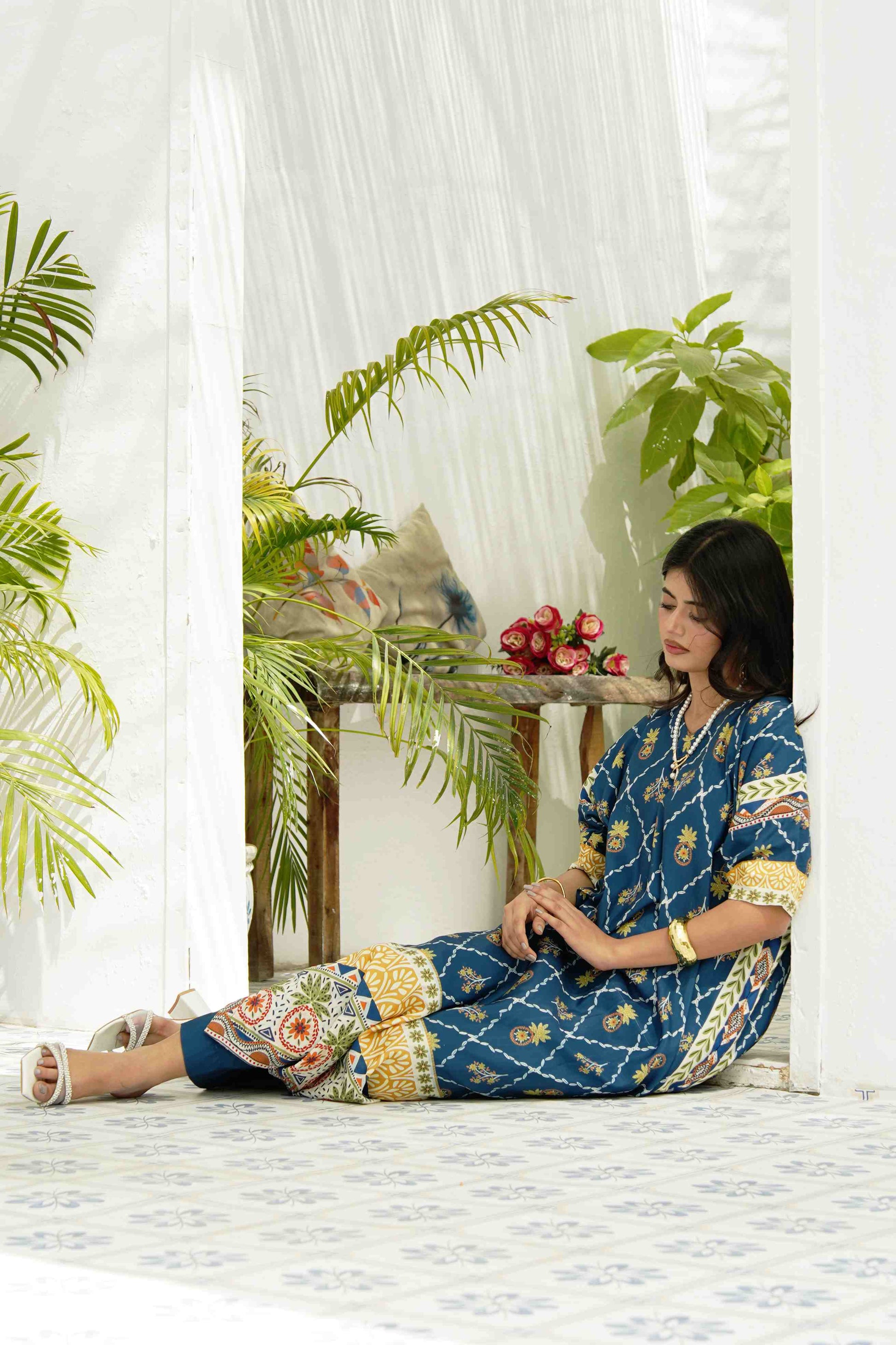 A statement in effortless luxury — this beautifully draped kaftan is crafted from Slub in a rich Navy blue tone. Embellished with detailing along the neckline, it combines fluid elegance with refined craftsmanship. Perfect for festive evenings, intimate dinners, or wedding soirées.