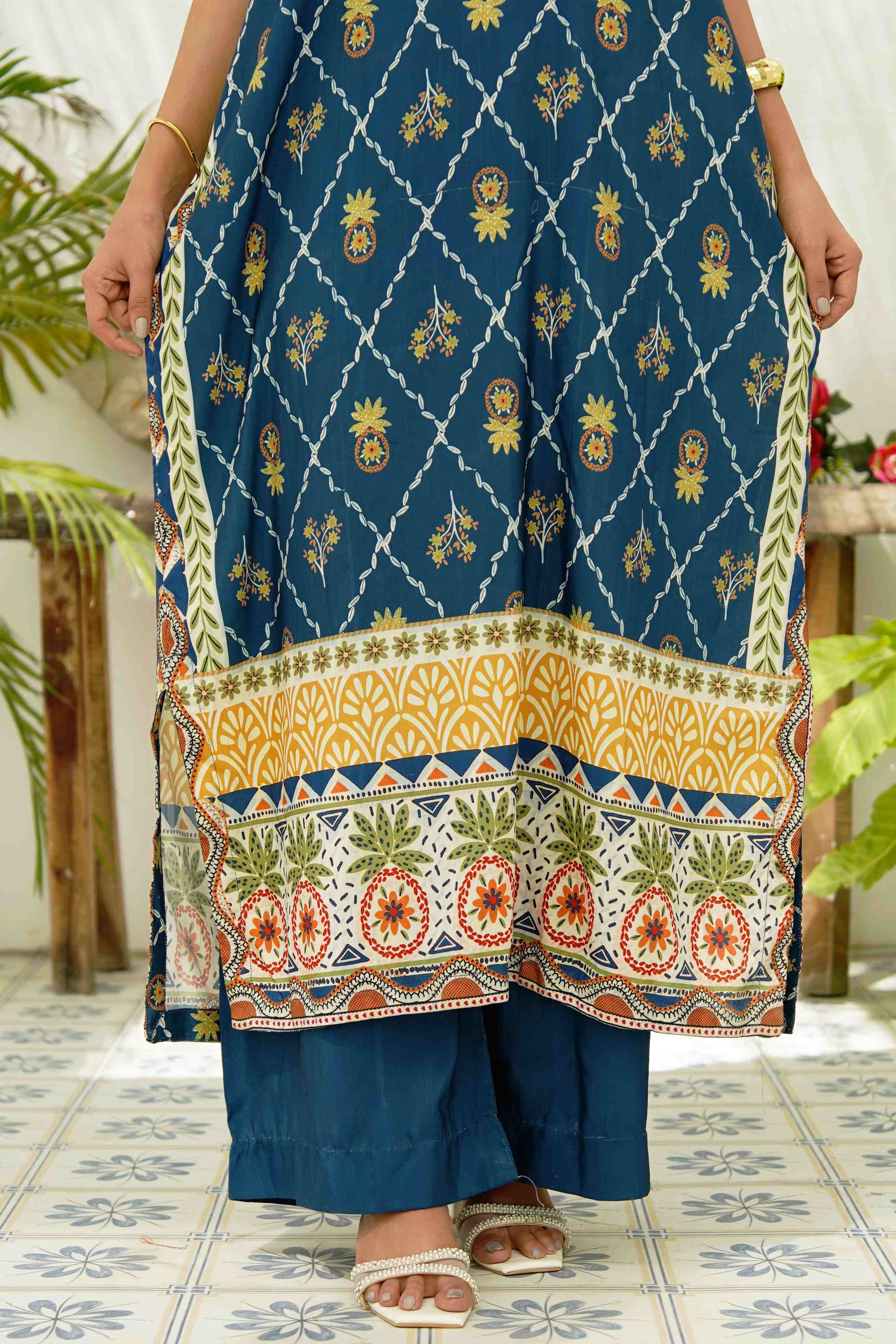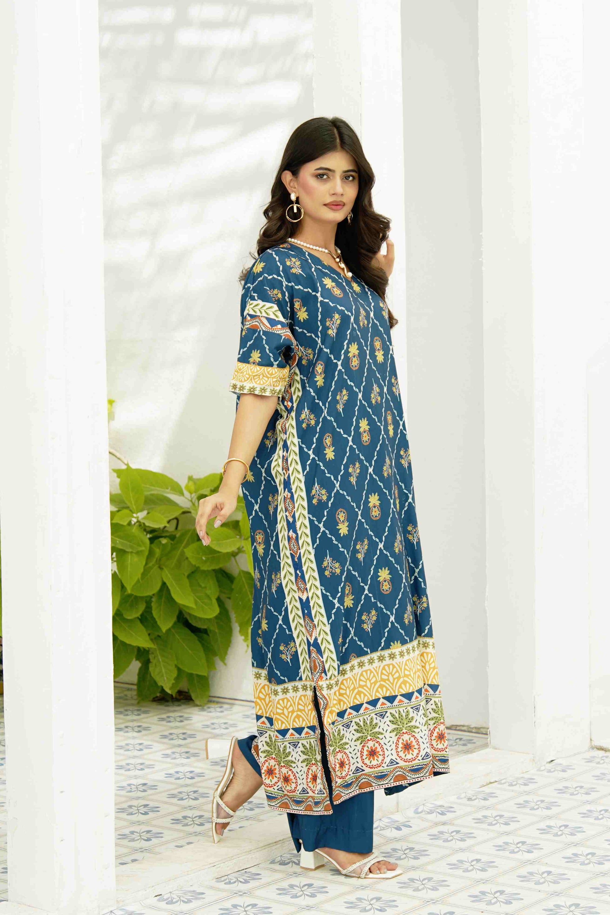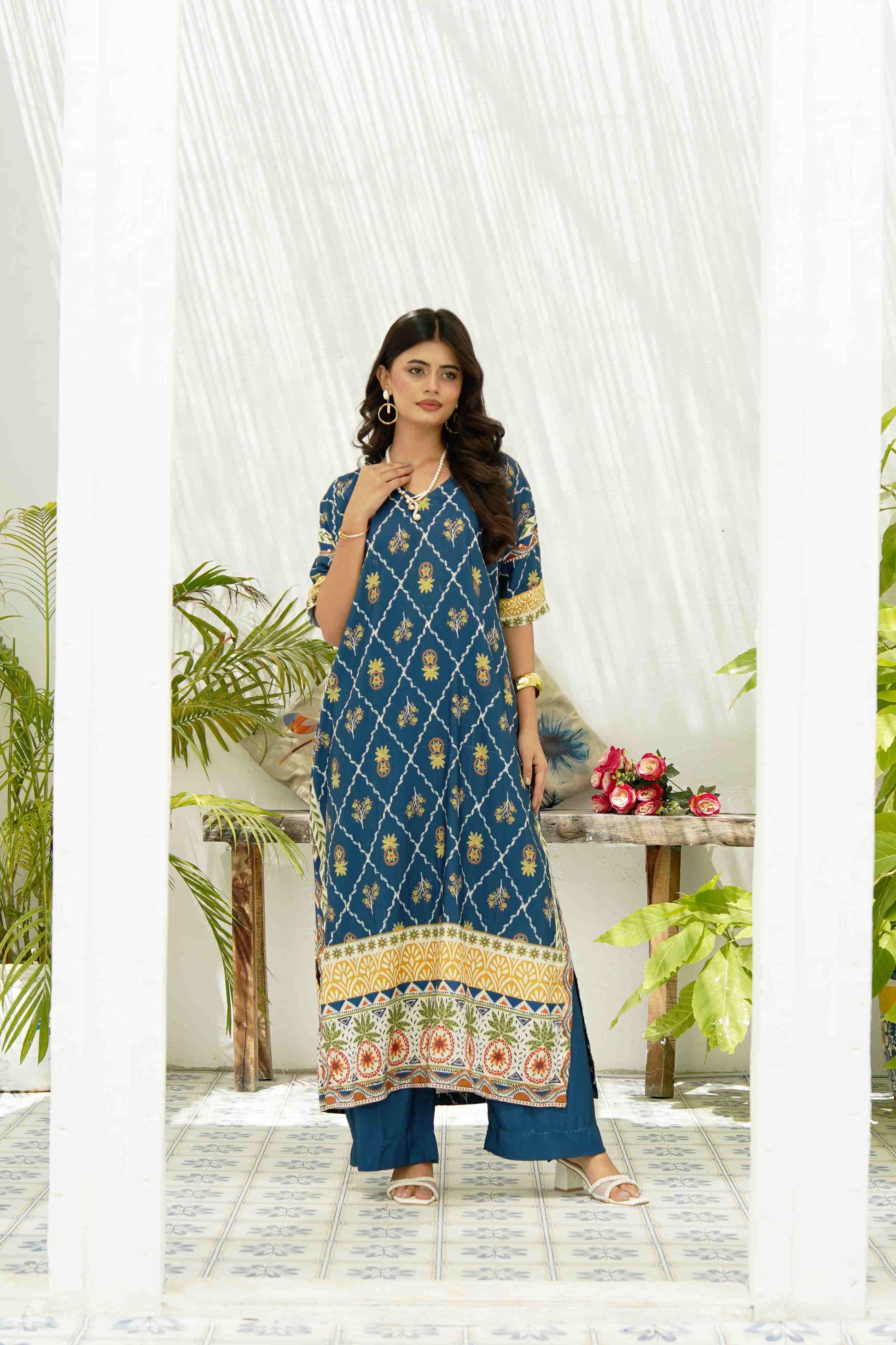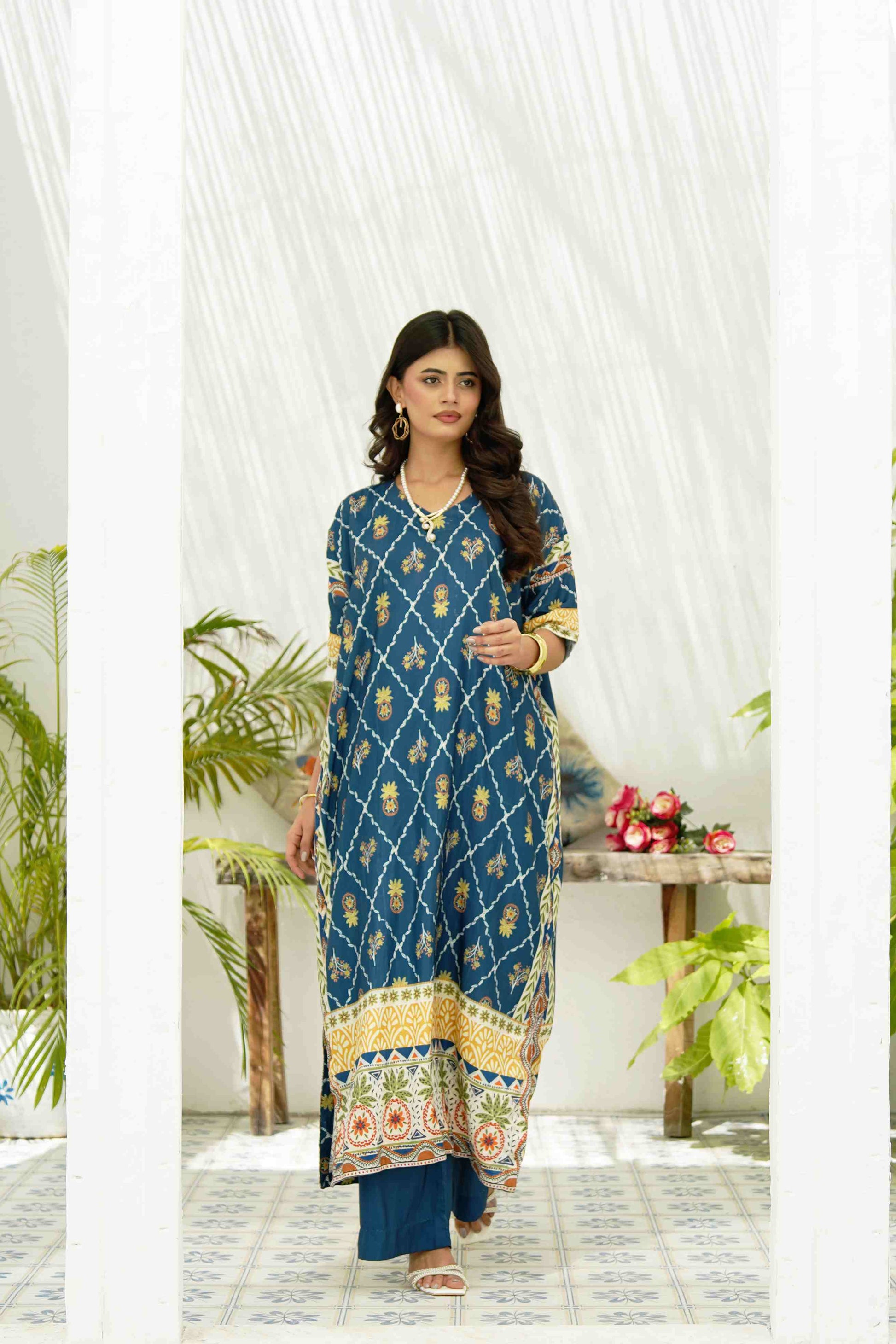 A statement in effortless luxury — this beautifully draped kaftan is crafted from Slub in a rich Navy blue tone. Embellished with detailing along the neckline, it combines fluid elegance with refined craftsmanship. Perfect for festive evenings, intimate dinners, or wedding soirées.