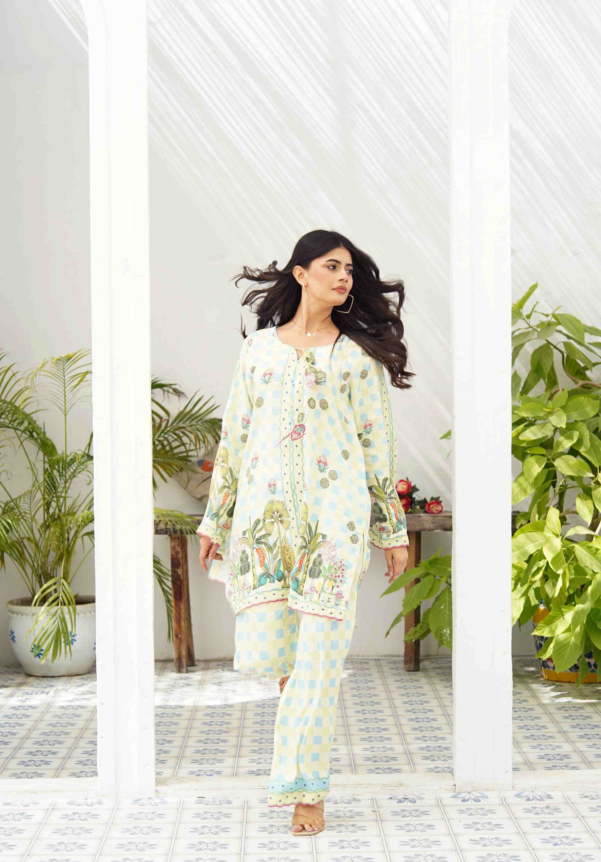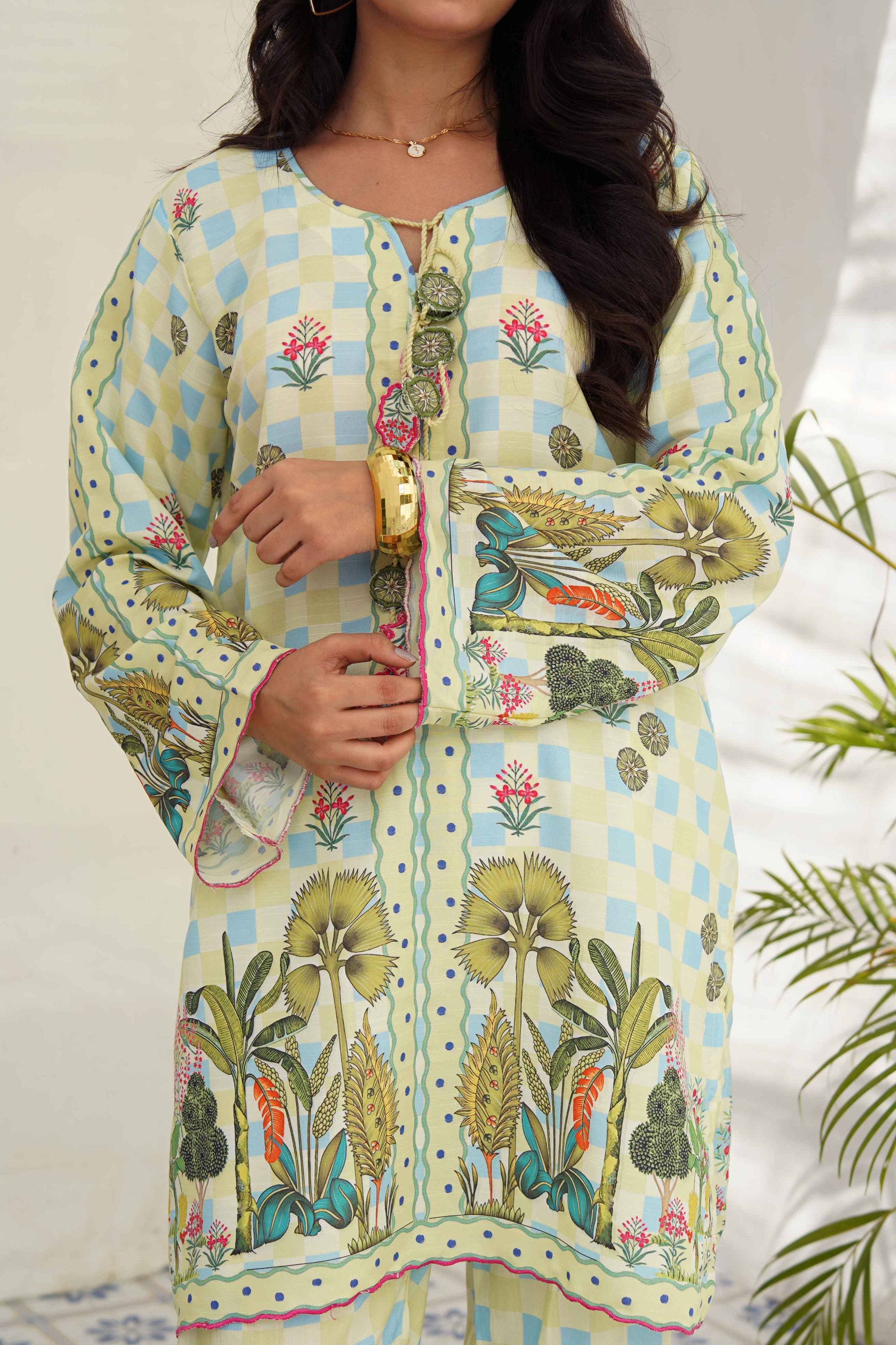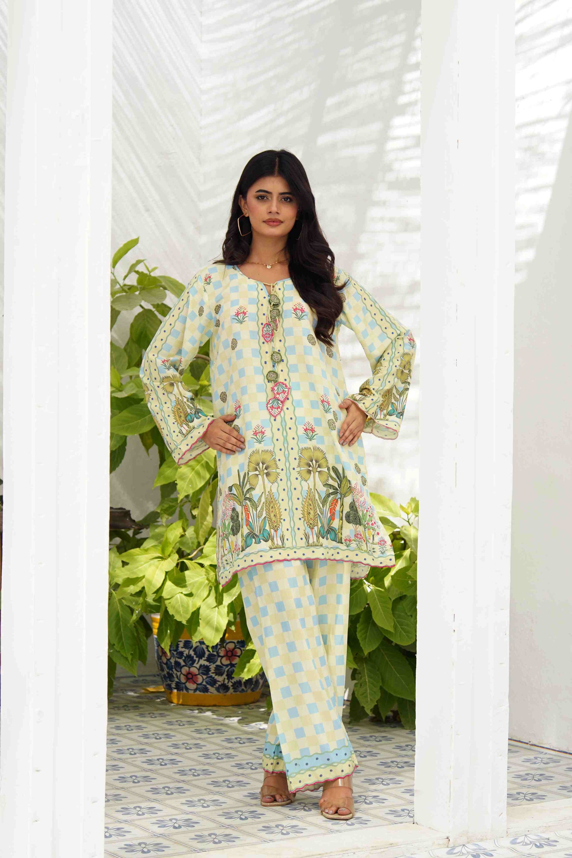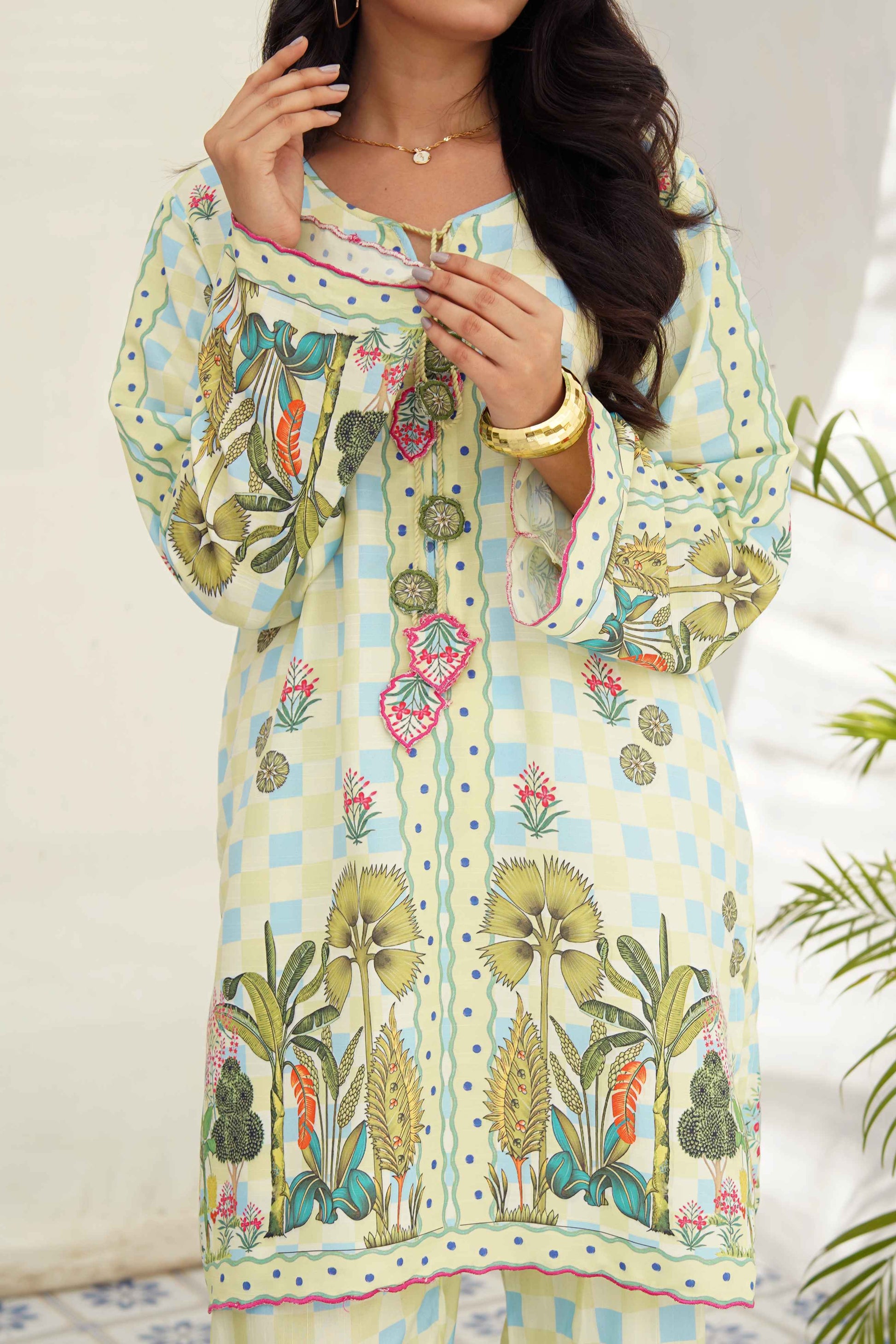 Add effortless charm to your wardrobe with this printed co-ord set crafted from soft Slub. Featuring a floral, geometric pattern Styled with a dori work, the set pairs a shirt with matching culottes. Perfect for casual outings, brunches, or everyday wear.