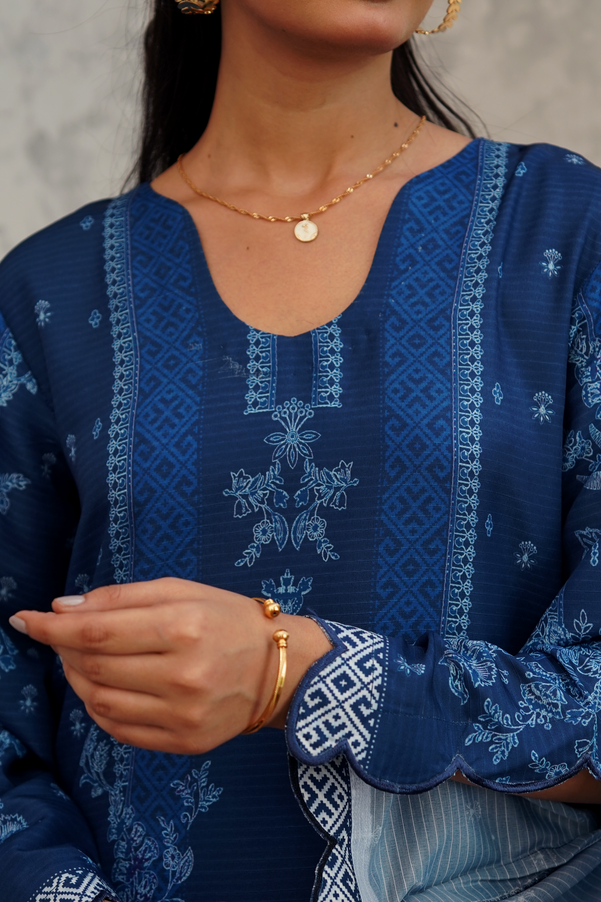 Nura combines sophisticated elegance with versatile styling. This piece seamlessly transitions across seasons, featuring a refined palette of navy blue, light blue, and cream that works effortlessly with your existing wardrobe. The thoughtful color combination offers multiple styling possibilities, whether you're dressing for professional settings or casual occasions. Crafted with attention to detail, Nura delivers the polished aesthetic that discerning customers appreciate. Perfect for those seeking quality pieces that balance timeless appeal with contemporary design.