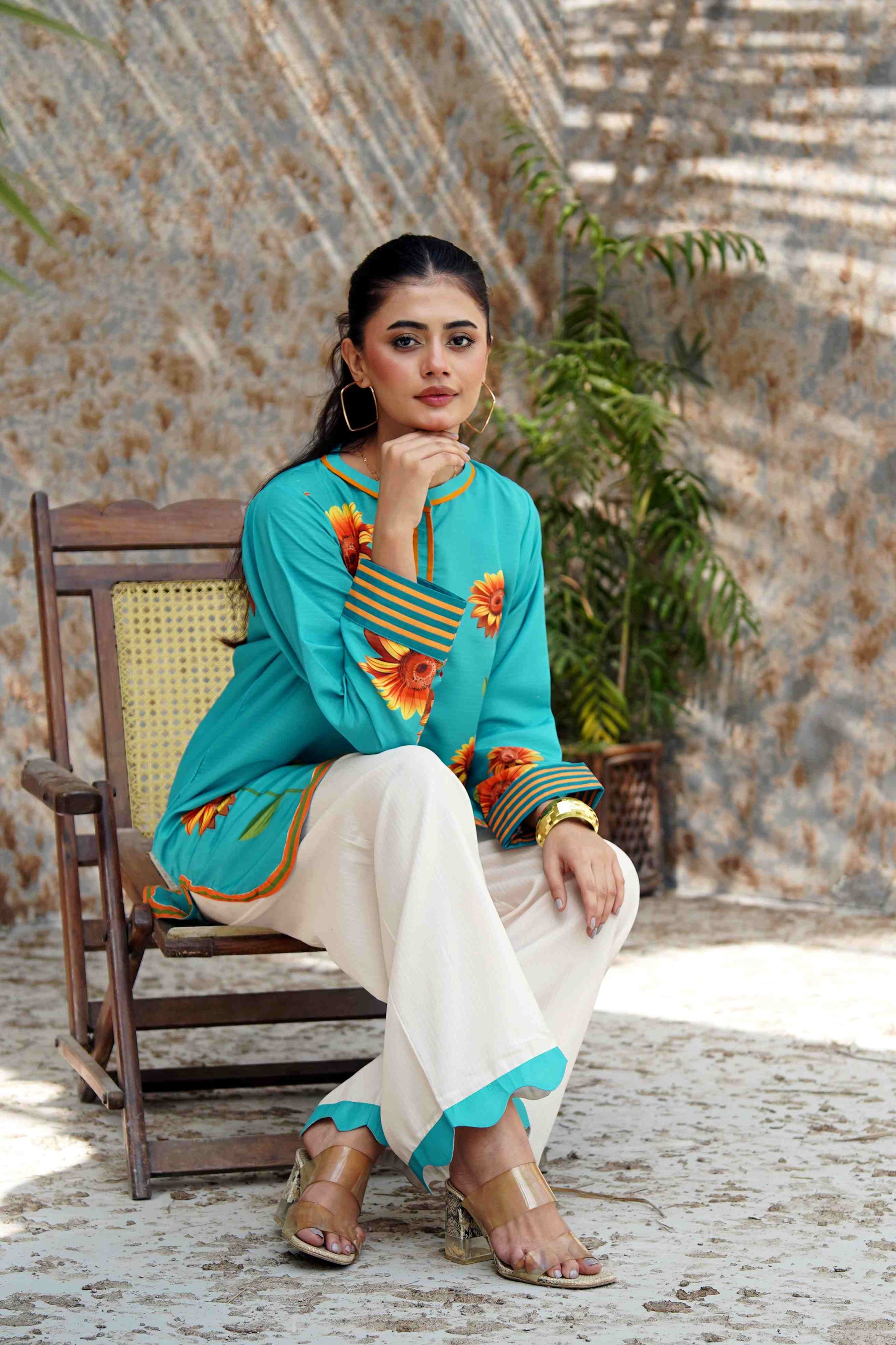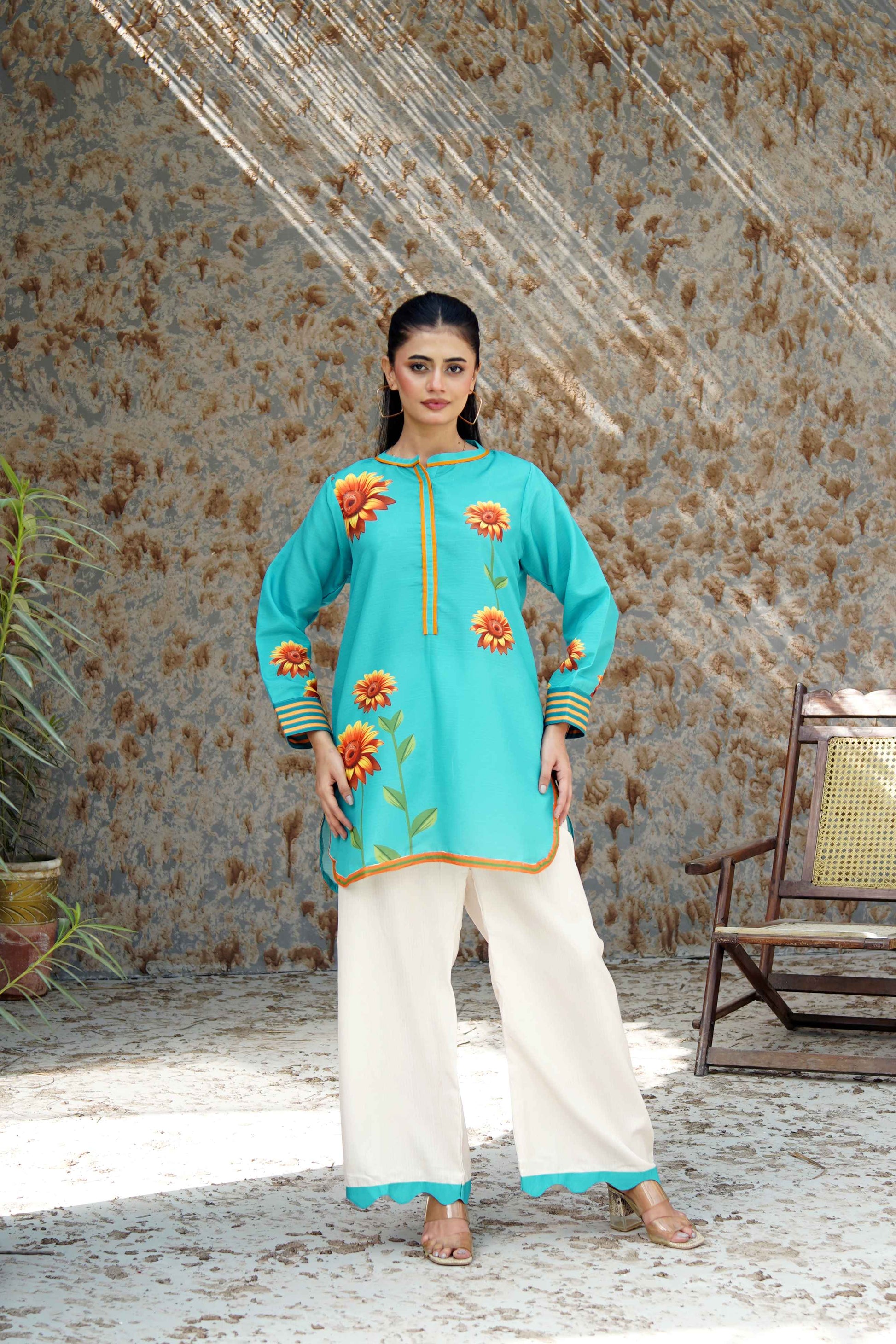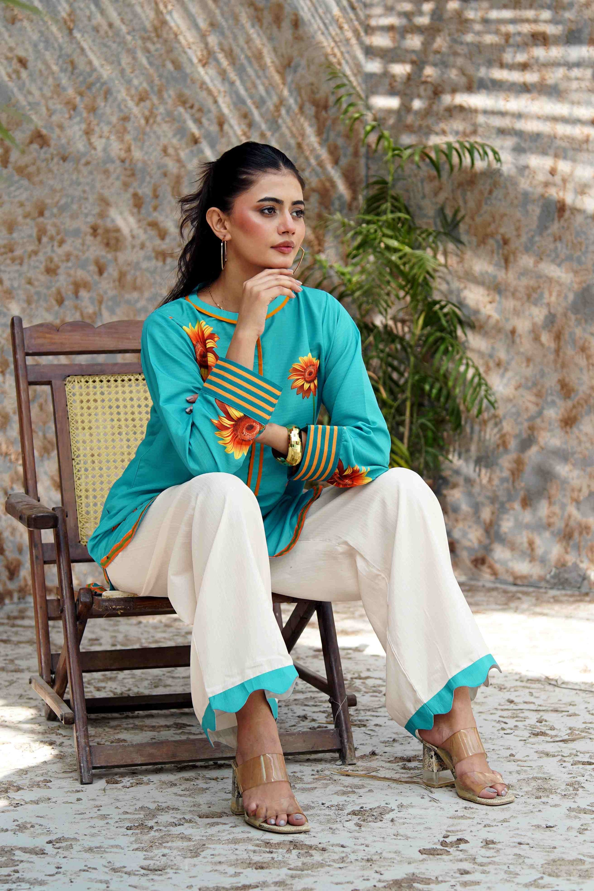 Add effortless charm to your wardrobe with this printed co-ord set crafted from soft Linéa Cambric. Featuring a floral, pattern, the set pairs a shirt with contrast trousers. Perfect for casual outings, brunches, or everyday wear.