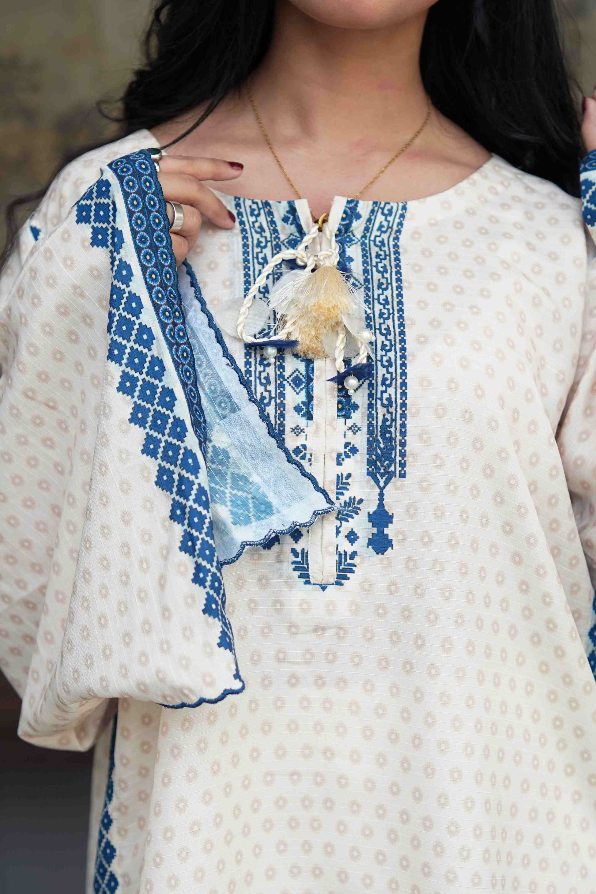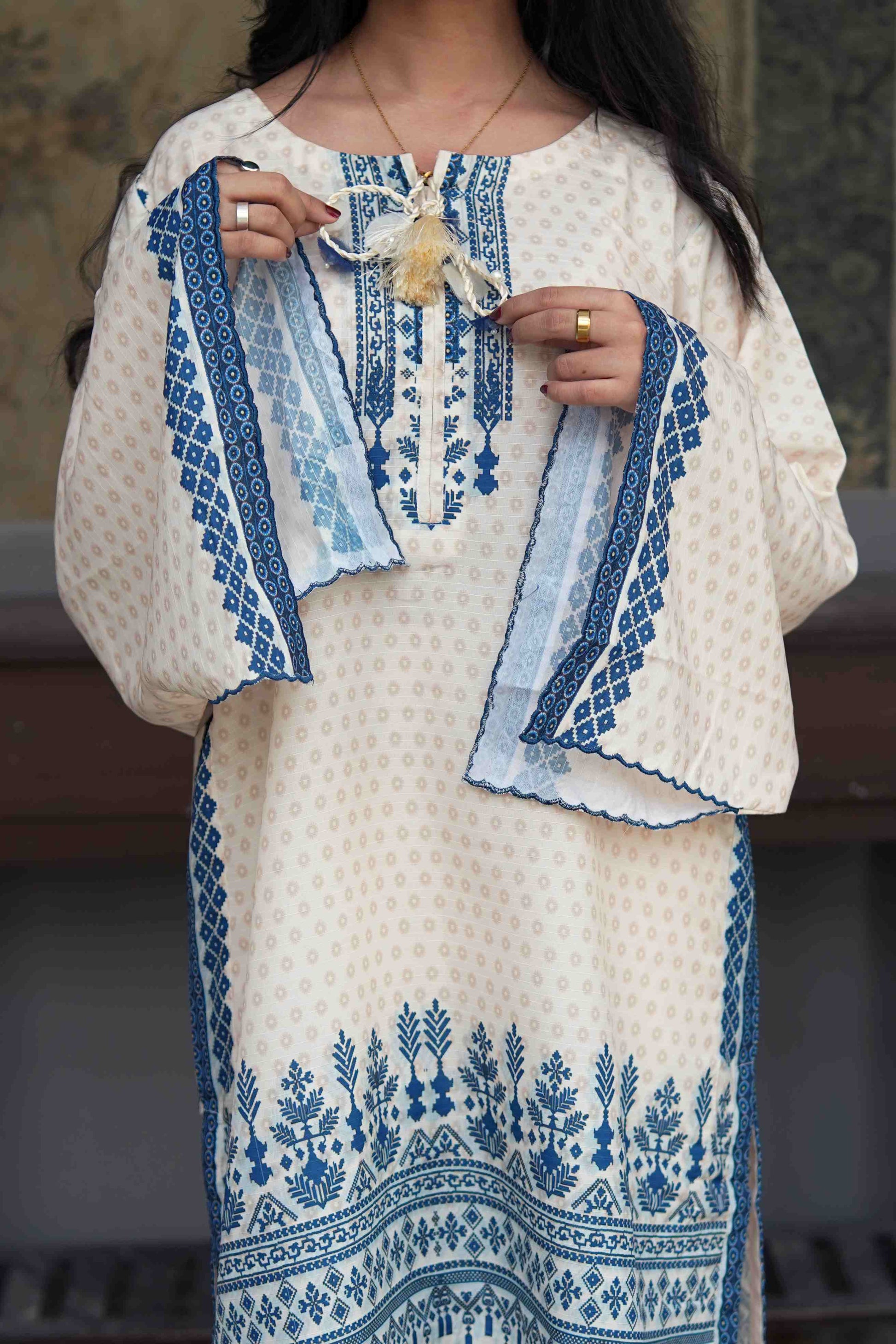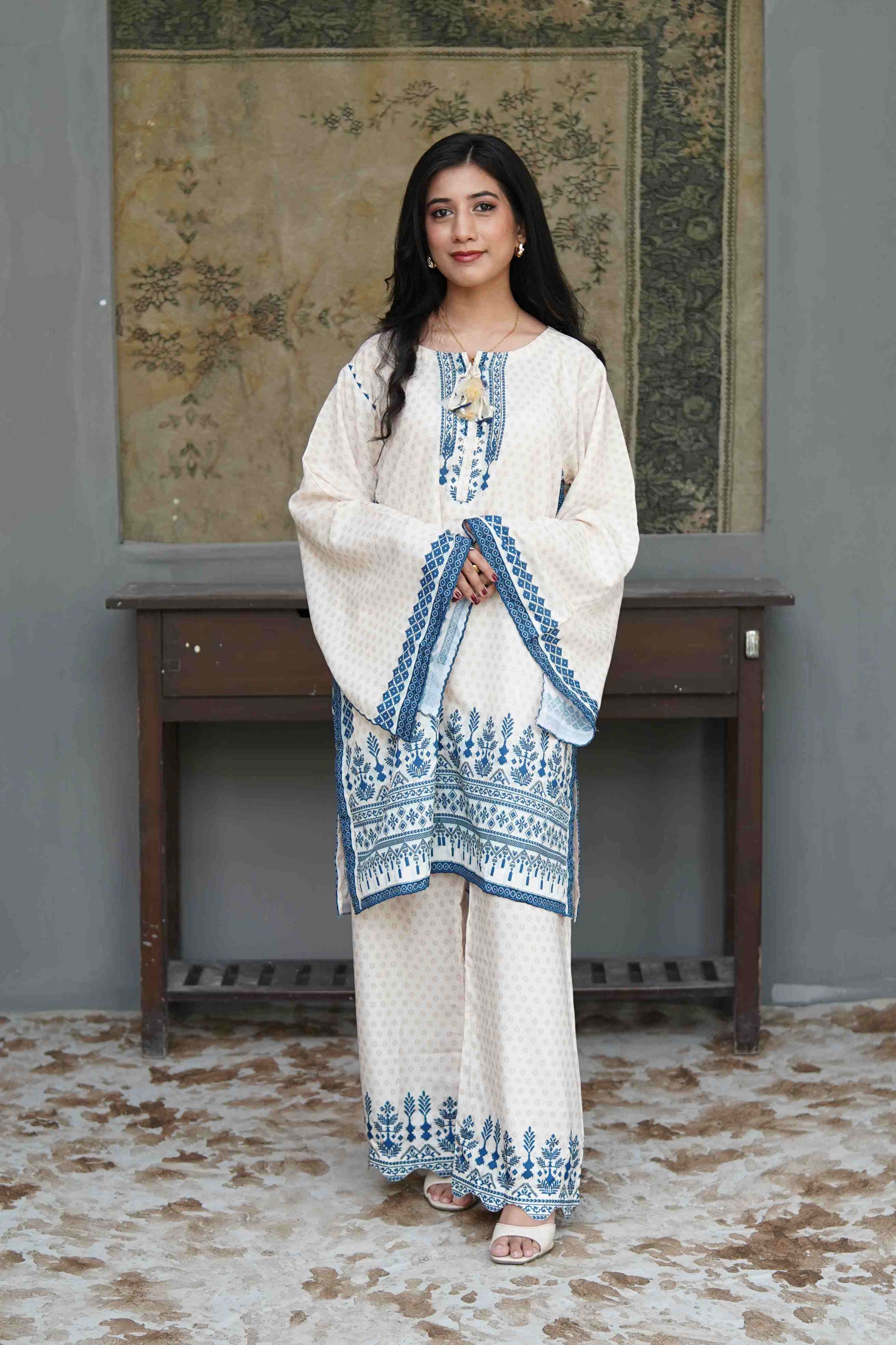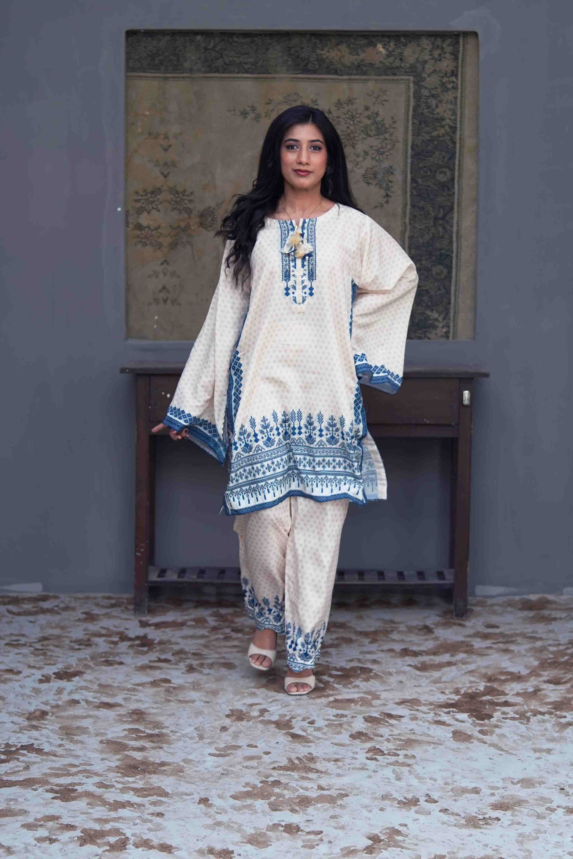 Add effortless charm to your wardrobe with this printed co-ord set crafted from soft Linéa Cambric. Featuring a floral, geometric pattern Styled with a Dori work, the set pairs a shirt with matching culottes. Perfect for casual outings, brunches, or everyday wear.